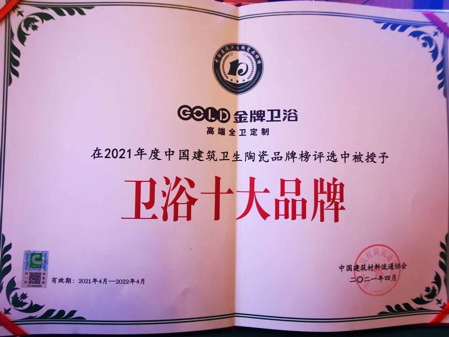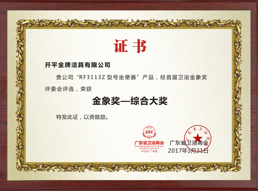颁发单位:广东省卫浴商会