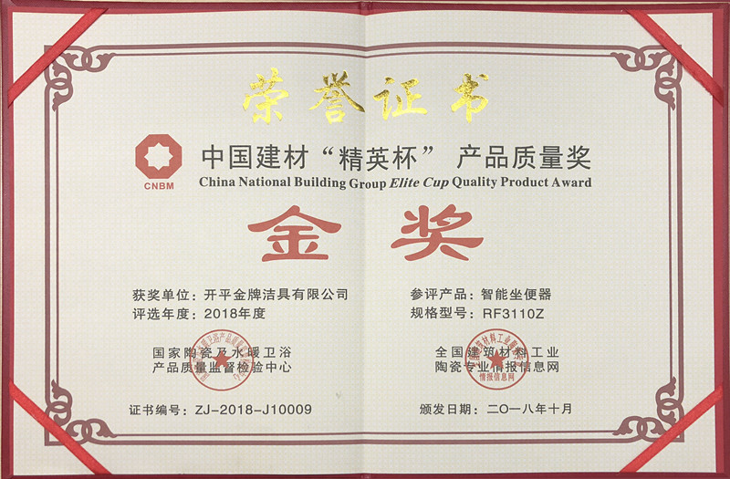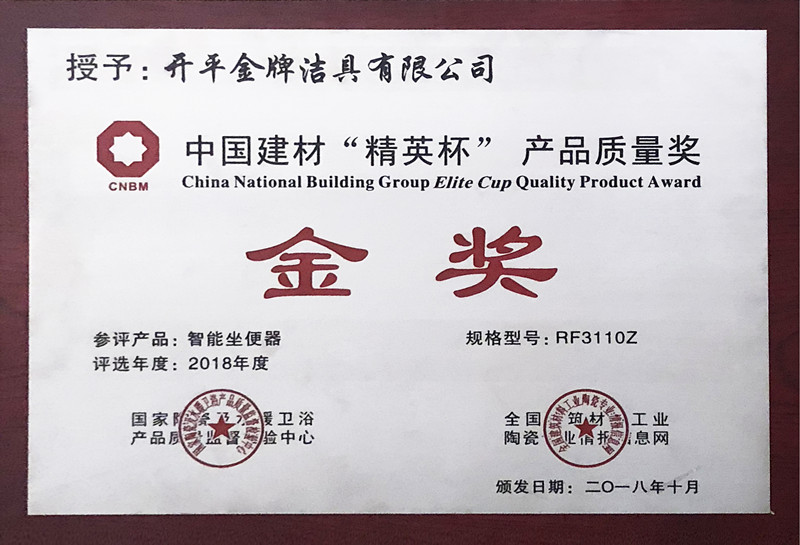 中国建材“精英杯”产品质量奖金奖(证书)