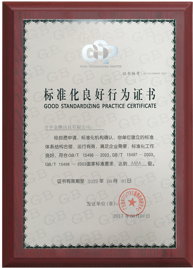 标准化良好行为证书